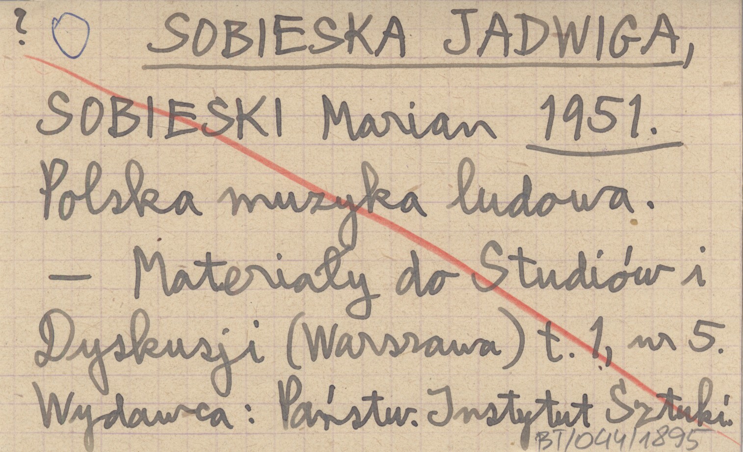 SOBIESKA Jadwiga SOBIESKI, Marian. ; 1951 Polska muzyka ludowa.