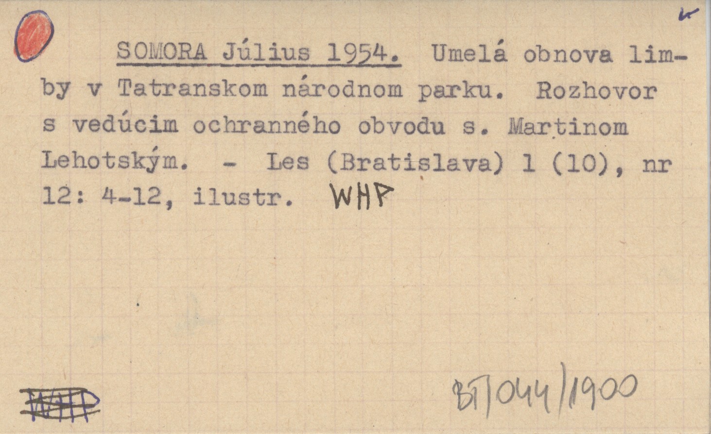 SOMORA Július 1954 Umelá obnova limby v Tatranskom národnom parku. Rozhovor s vedúcim ochranného obvodu s. Martinom Lehotským.