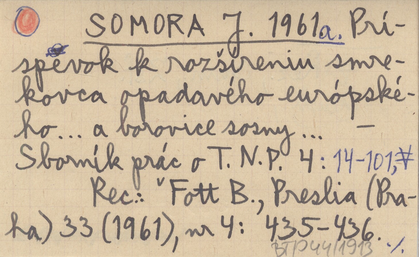 SOMORA J. 1961 a Príspevok k rozšíreniu smrekovca opadavého európského... a borovice sosny...