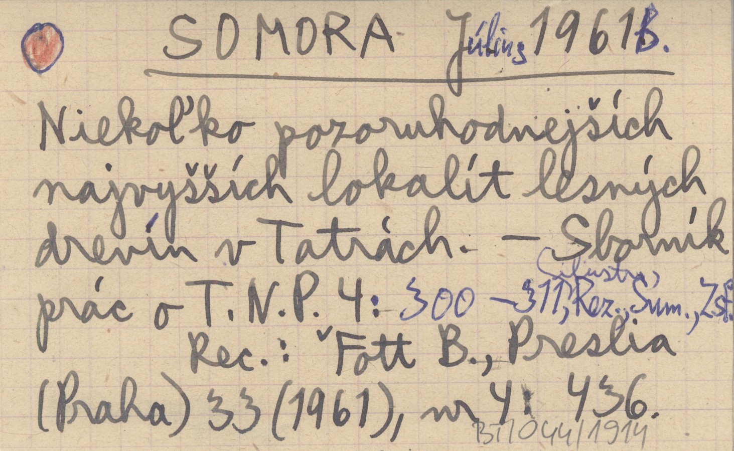 SOMORA Július 1961 b Niekoľko pozoruhodnejších najvyšších lokalít lesných drevín v Tatrách.