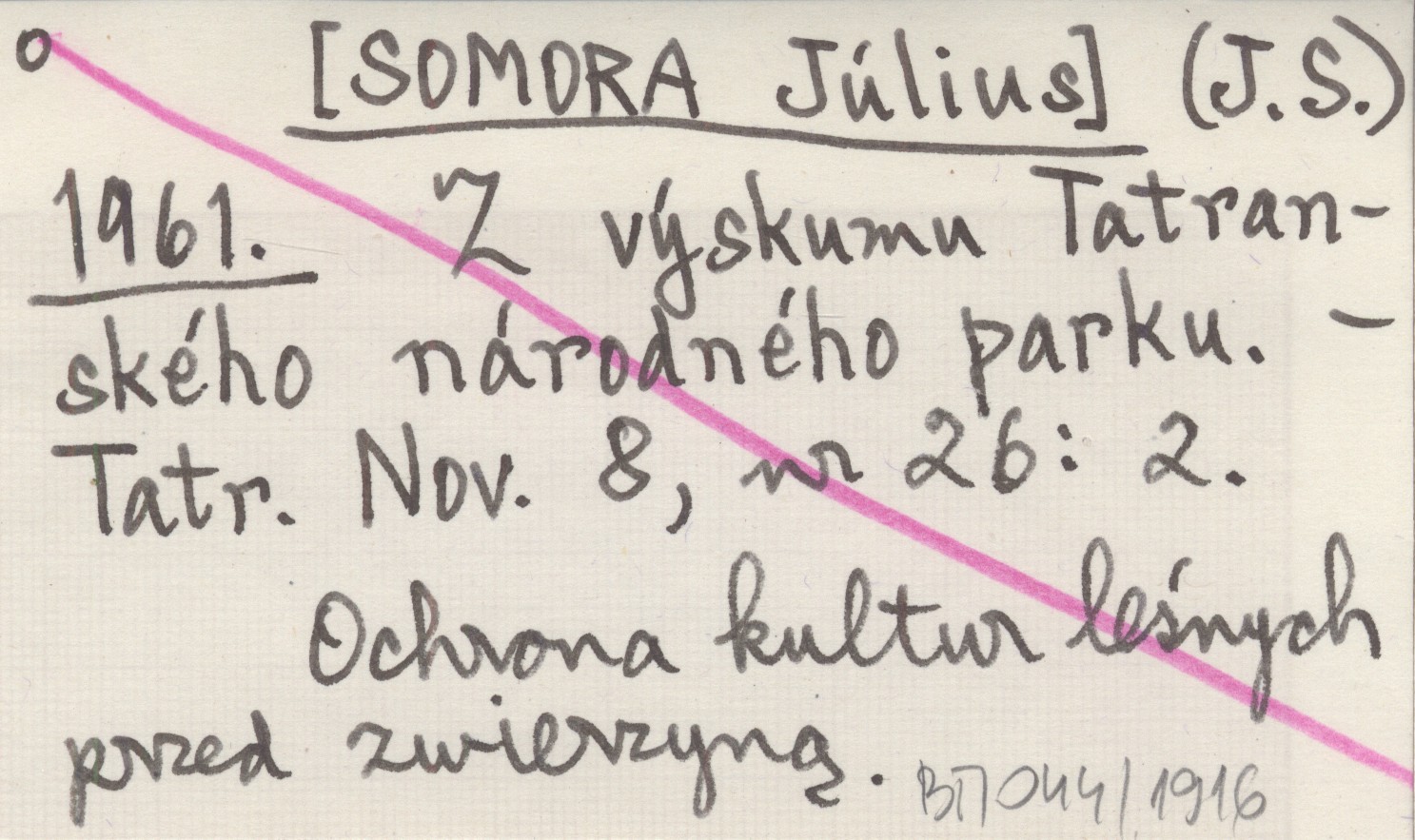(J. S.) [SOMORA Július] 1961 Z výskumu Tatranského národného parku.