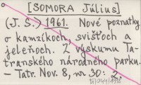 (J. S.) [SOMORA Július] 1961 Nové poznatky o kamzíkoch, svišťoch a jeleňoch. Z výskumu Tatranského národného parku.