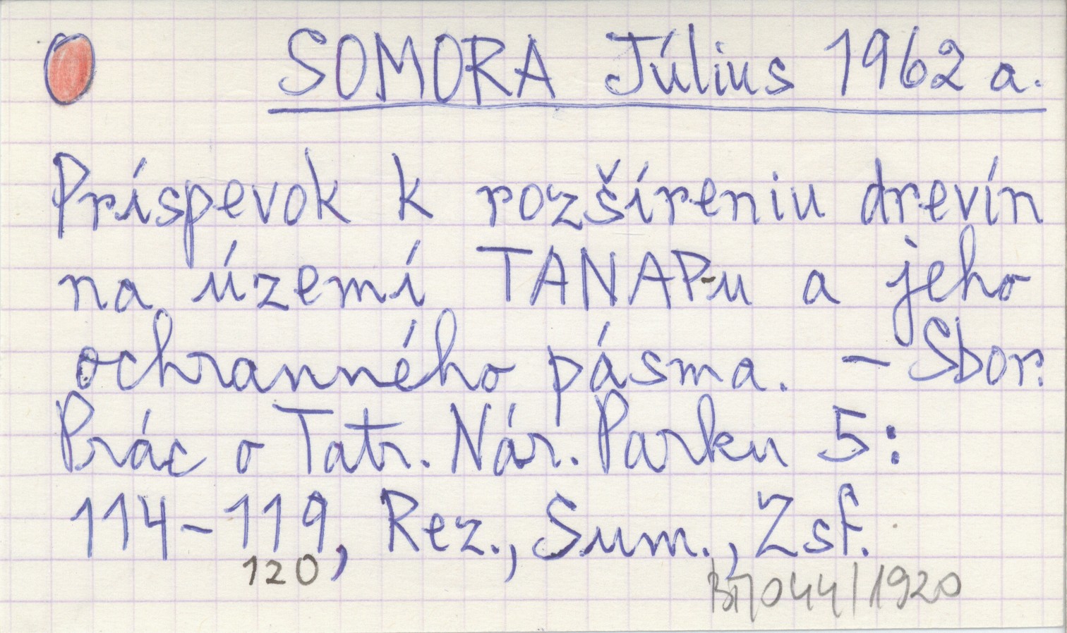 SOMORA Július 1962 a Príspevok k roz¹íreniu drevín na území TANAPu a jeho ochranného pásma.