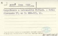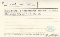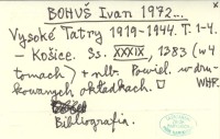 BOHUŠ Ivan 1979 Informácie o tatranských lesoch vo fonde Lesníckeho podvýboru Verejnosprávneho výboru Spišskej župy v Štátnom oblastnom archíve v Levoči.