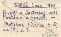 BOHUŠ Ivan 1972 Povesť o Jastrabej veži. Fantázia a pravda.