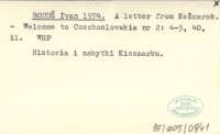 BOHUŠ Ivan 1974 A letter from Kežmarok.