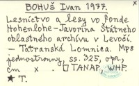 BOHUŠ Ivan 1977 Lesníctvo a lesy vo fnde Hohenlohe-Javorina Štátneho oblastného archívu v Levočí.