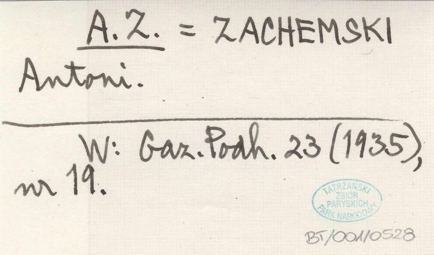 A. Z. ZACHEMSKI Antoni Gazeta Podhalańska 23 (1935), nr 19.
