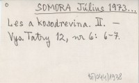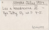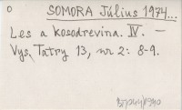 SOMORA Július HUMLOVÁ, Marianna. ; 1971 Príspevok k zalesňovaniu borovicou limbou (Pinus cembra L.) v Tatranskom národnom parku.