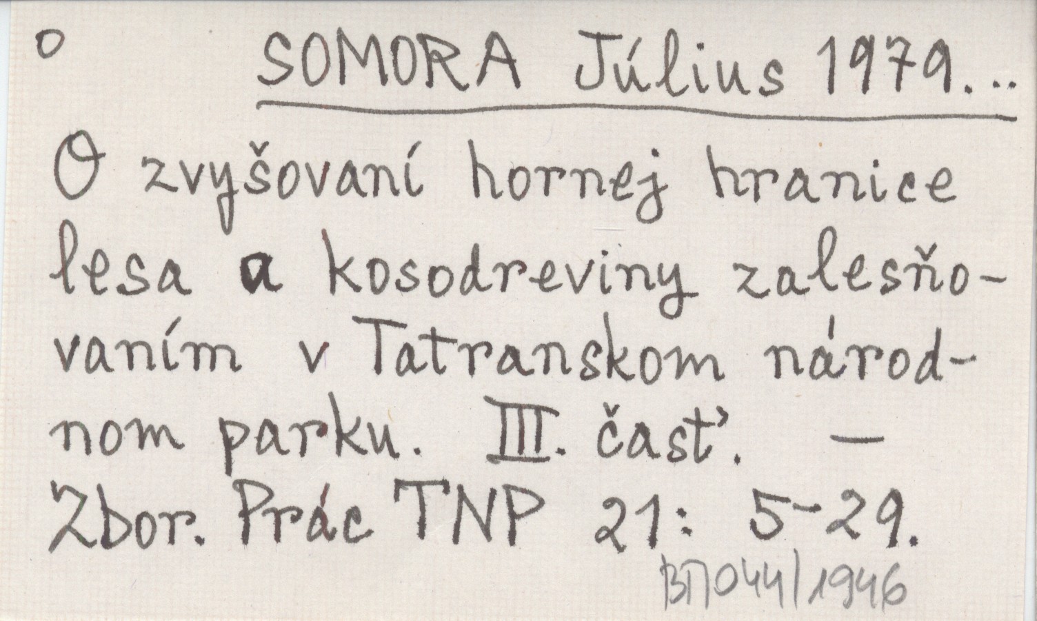 SOMORA Július 1979... O zvyšovaní hornej hranice lesa a kosodreviny zalesňovaním v Tatranskom národnom parku. III. časť.