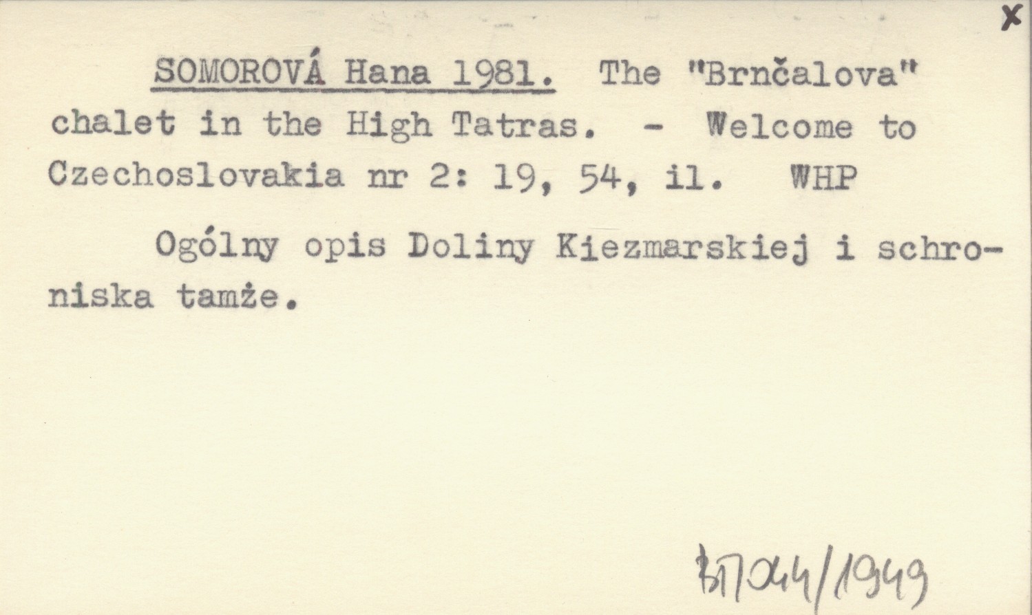 Welcome to Czechoslovakia, Nr 2: 19, 54, il. Ogólny opis Doliny Kiezmarskiej i schroniska tamże.