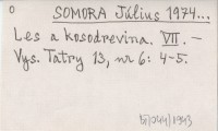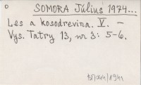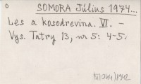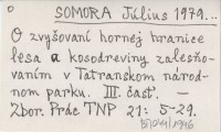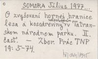 SOMORA Július 1976... O zvyšovaní hornej hranice lesa a kosodreviny zalesňovaním v Tatranskom národnom parku. [I.]