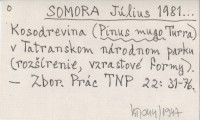 SOMORA Július 1982... Význam subalpínskeho stupňa kosodreviny (Pinus mugo Turra) v Tatranskom národnom parku. (S osobitným zreteľom na hydro-pedologický režim).