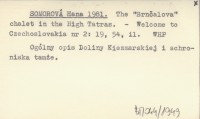 SOMOROVÁ Hana 1981 The "Brnčalova" chalet in the High Tatras.