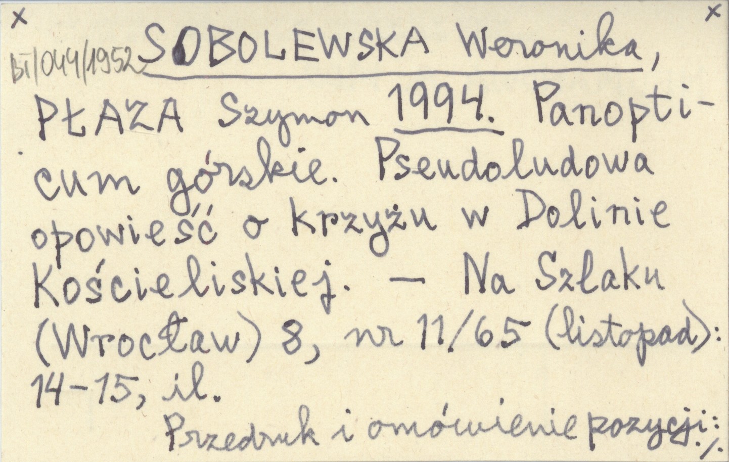 SOBOLEWSKA Weronika PŁAZA, Szymon. ; 1994 Panopticum górskie. Pseudoludowa opowieść o krzyżu w Dolinie Kościeliskiej.