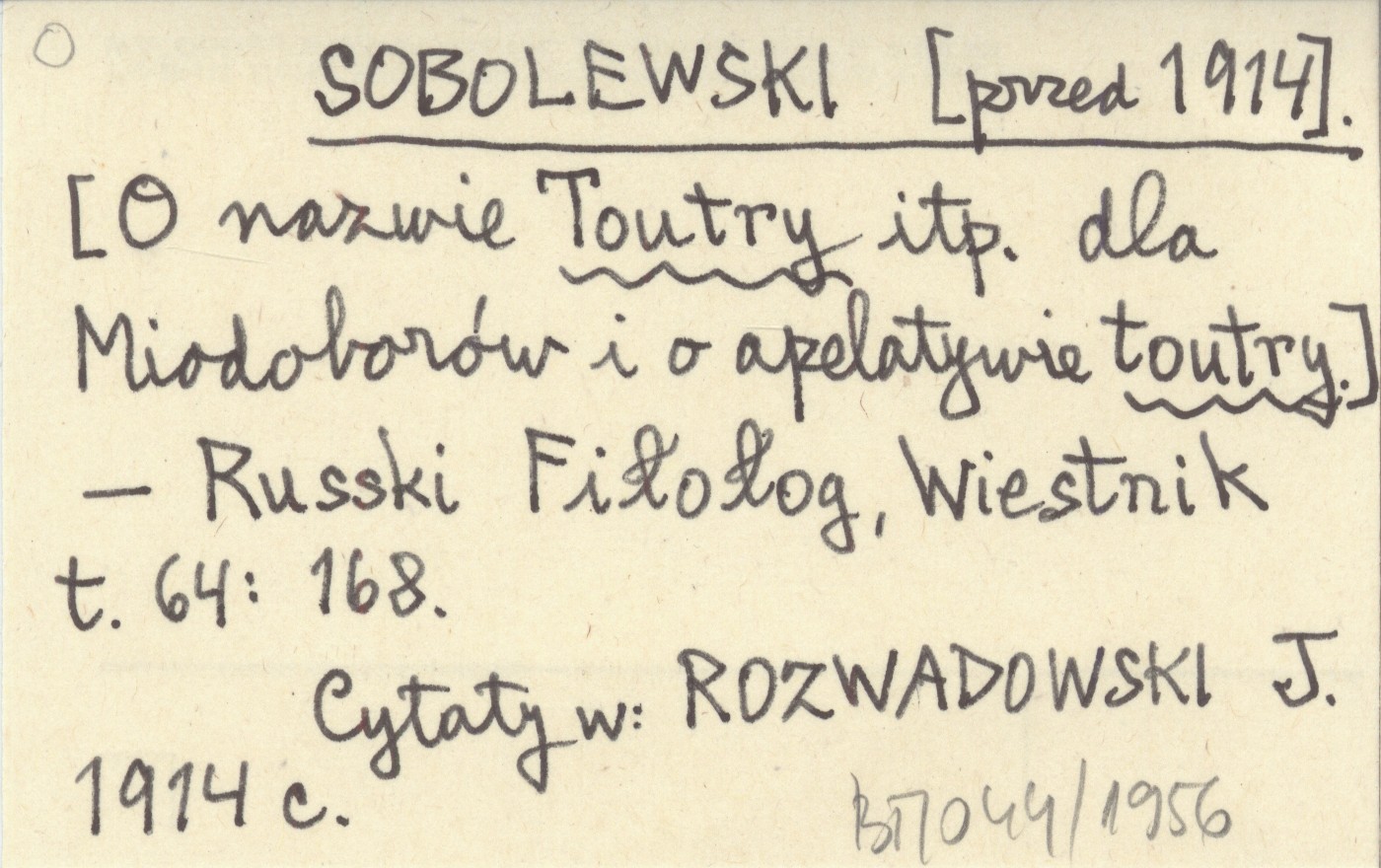 SOBOLEWSKI [przed 1914] [O nazwie Toutry itp. dla Miodoborów i o apelatywie toutry.]