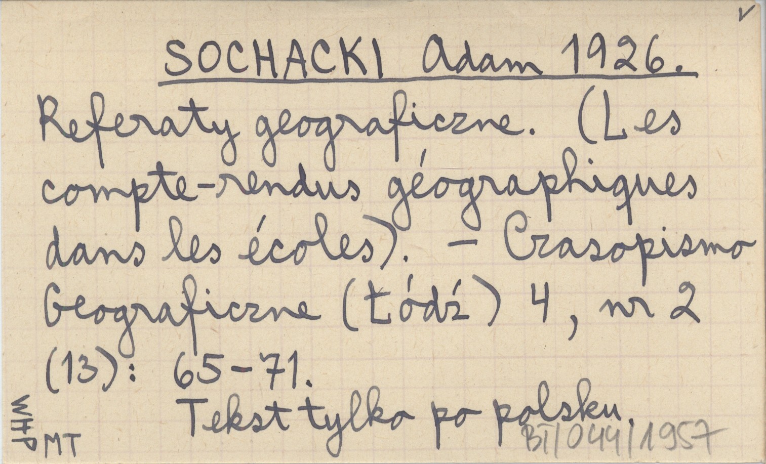 Czasopismo Geograficzne (Łódź) , 4, nr 2 (13): 65-71. Tekst tylko po polsku.