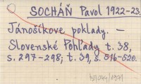 SOCHÁŇ Pavol 1922-23 Jánoąíkove poklady.