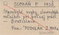 SOCHÁŇ P. 1930 Starobylé zvyky slovenských roµníkov pri poµnej práci.