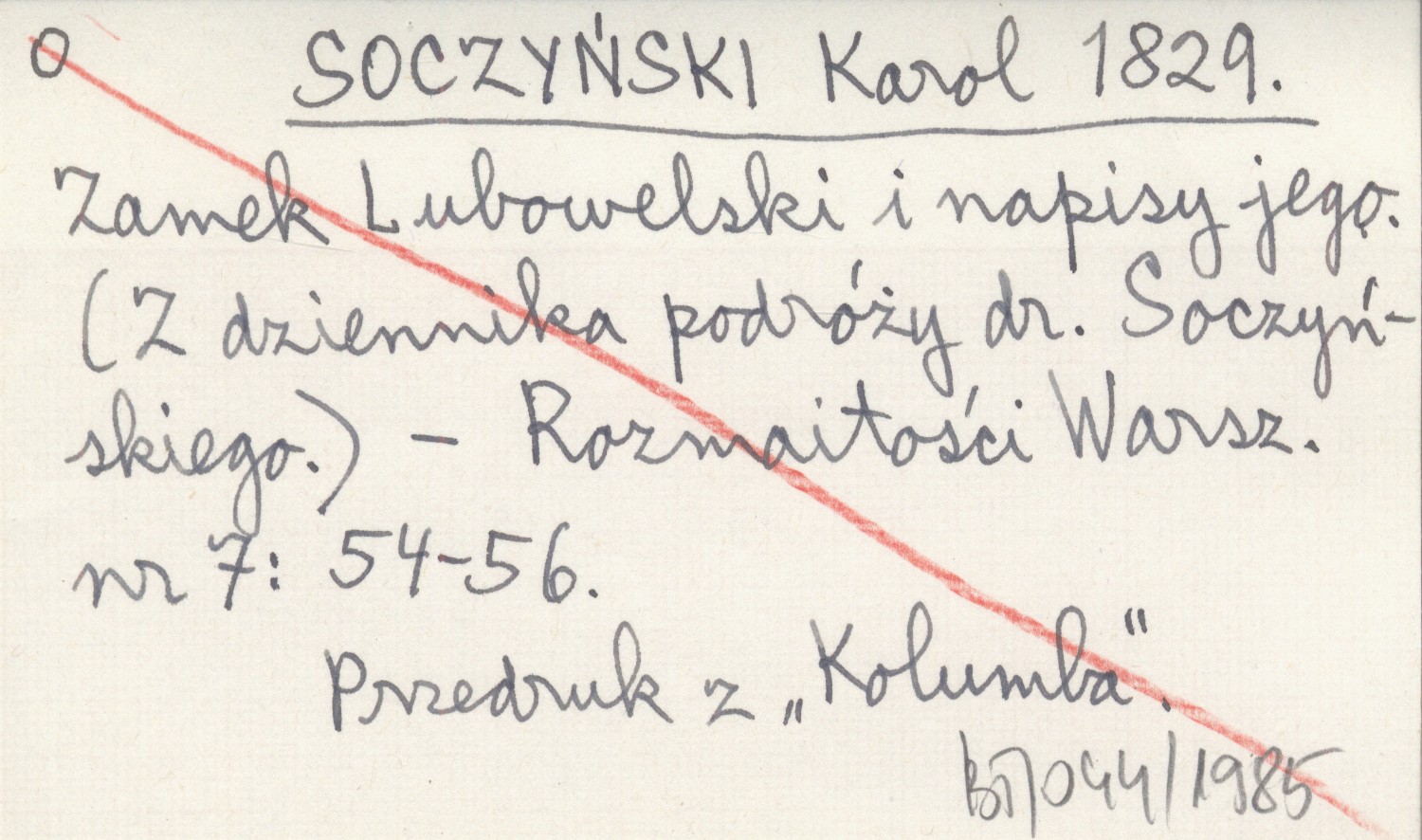 SOCZYŃSKI Karol 1829 Zamek Lubowelski i napisy jego. (Z dziennika podróży dr. Soczyńskiego).