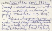 SOCZYŃSKI Karol 1834 a [Uwagi i uzupełnienia, m. in. wykaz zdrojów mineralnych na Spiszu, do pozycji: BULIKOWSKI F. B. 1834.]