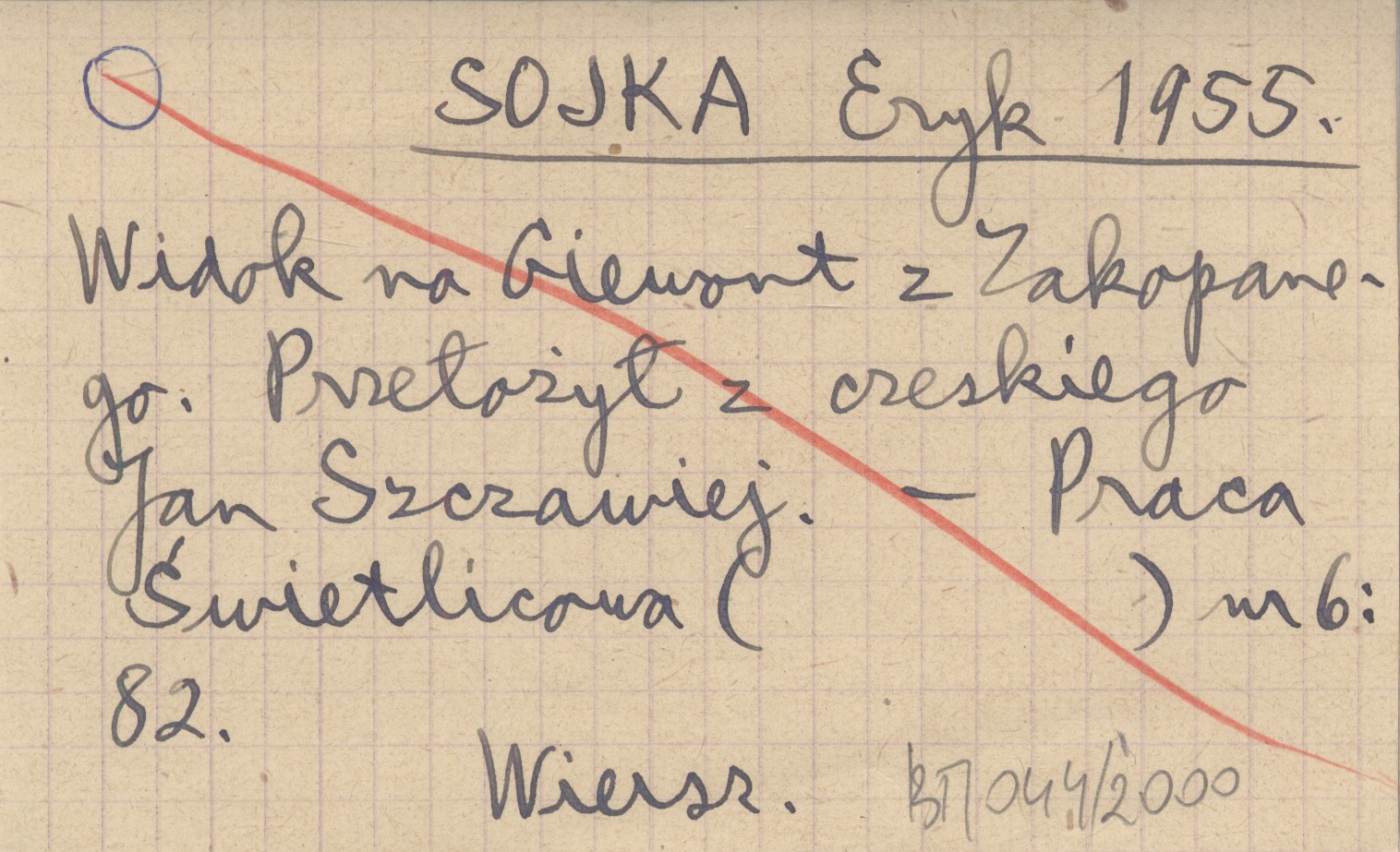 SOJKA Eryk 1955 Widok na Giewont z Zakopanego. Przełożył z czeskiego Jan Szczawiej.