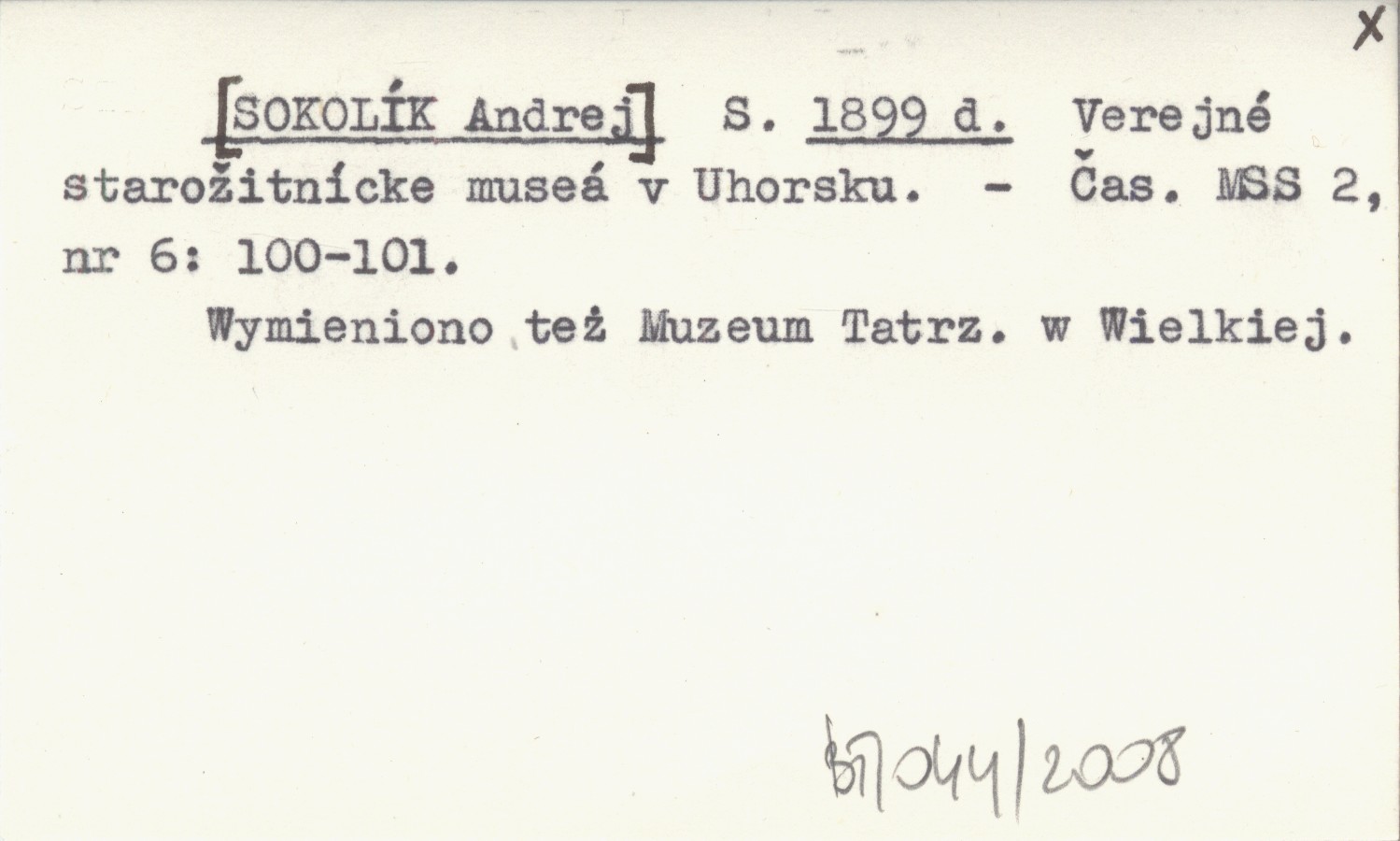 S. [SOKOLÍK Andrej] 1899 d Verejné starožitnícke museá v Uhorsku.