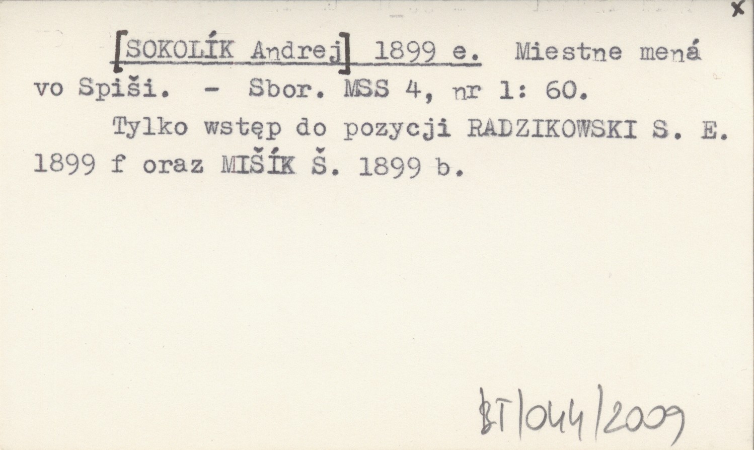 Sborník Muzeálnej Slovenskej Spoločnosti, 4, nr 1: 60. Tylko wstęp do pozycji: RADZIKOWSKI S. E. 1899 f oraz MIŠÍK Š. 1899 b.