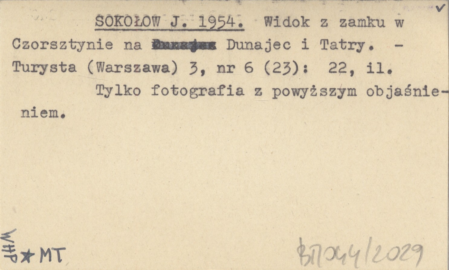 SOKOŁOW J. 1954 Widok z zamku w Czorsztynie na Dunajec i Tatry.