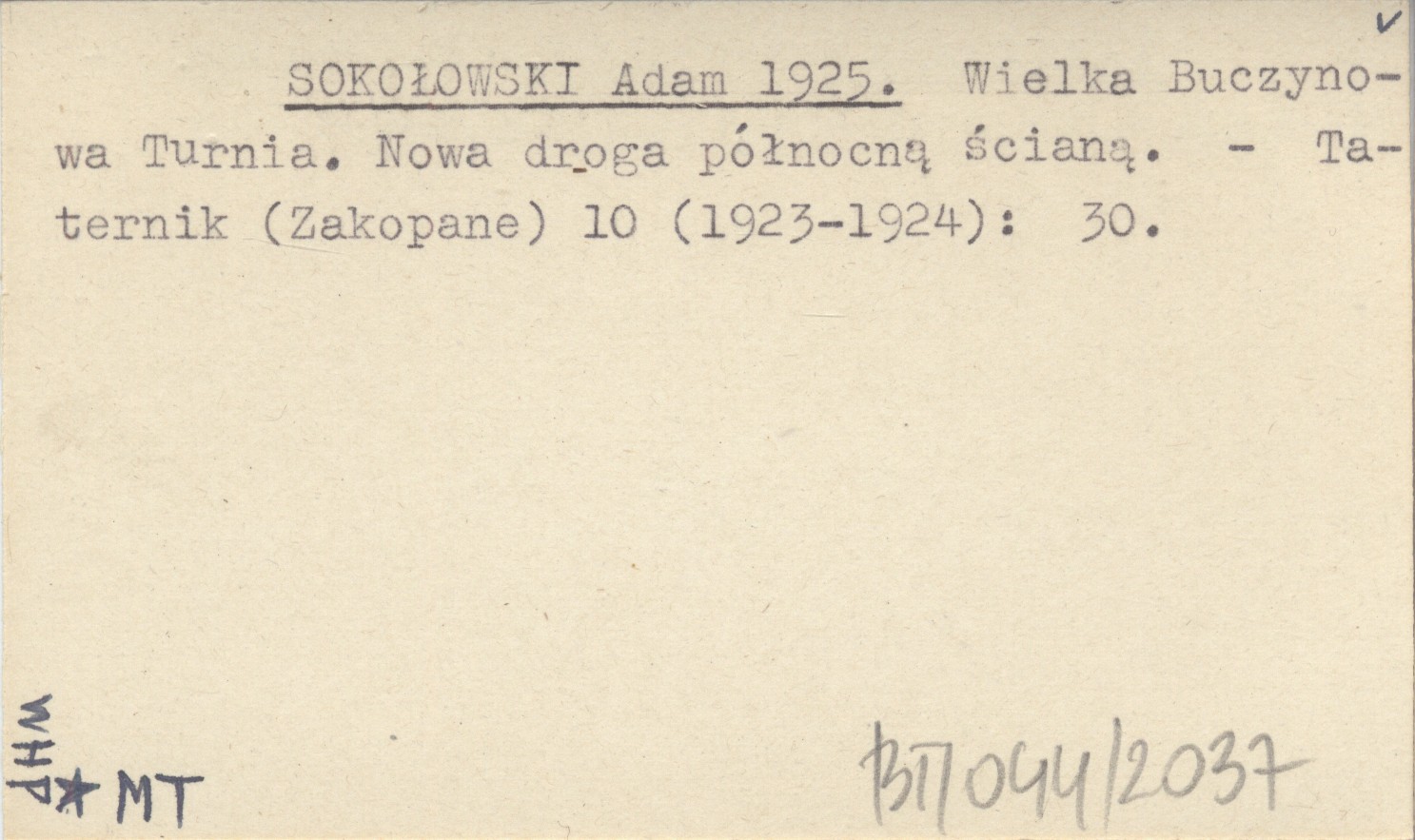 SOKOŁOWSKI Adam 1925 Wielka Buczynowa Turnia. Nowa droga północną ścianą.