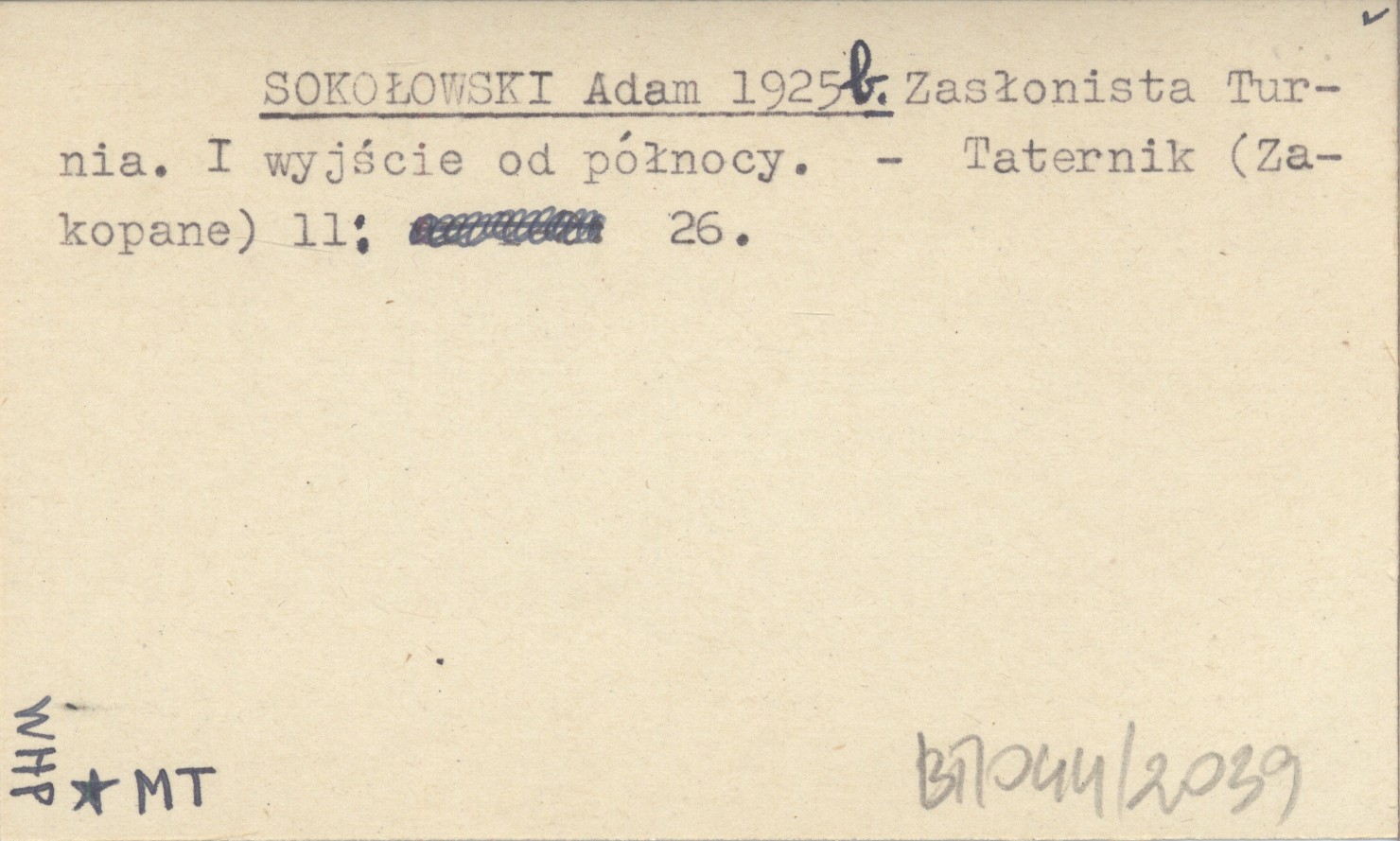 SOKOŁOWSKI Adam 1925 b Zasłonista Turnia. I wyjście od północy.