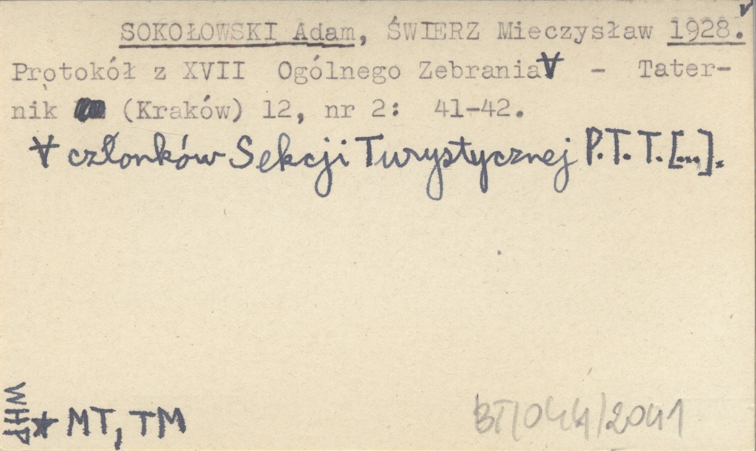 SOKOŁOWSKI Adam ŚWIERZ, Mieczysław. ; 1928 Protokół z XVII Ogólnego Zebrania członków Sekcji Turystycznej P.T.T. [...].