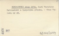 SOKOŁOWSKI Adam 1934 Park Narodowy Tatrzański a turystyka górska.