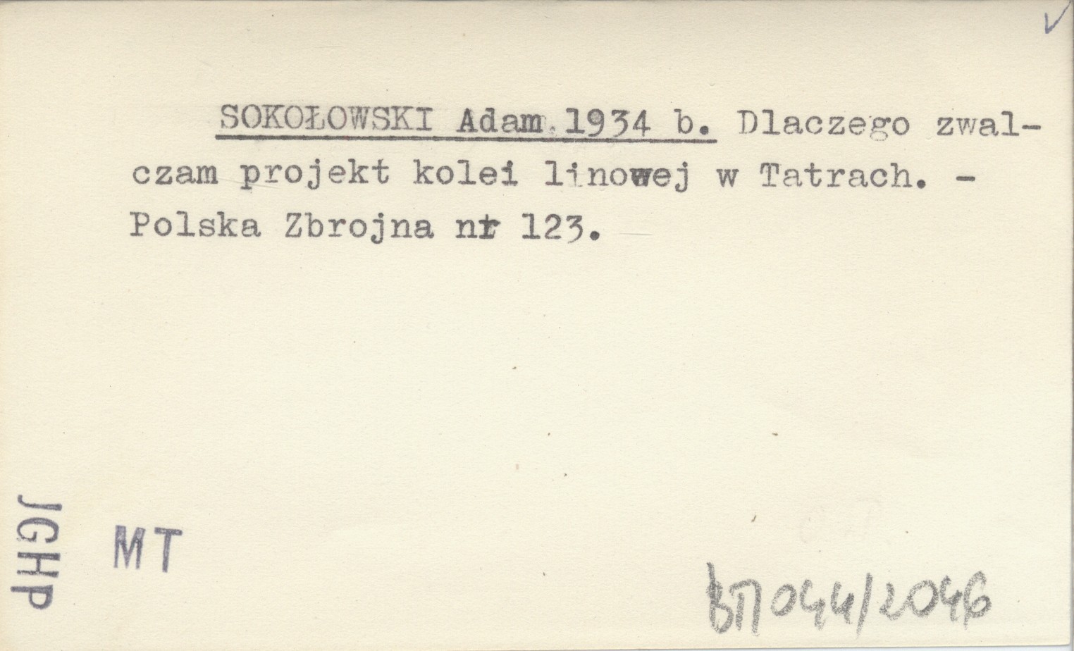 SOKOŁOWSKI Adam 1934 b Dlaczego zwalczam projekt kolei linowej w Tatrach.