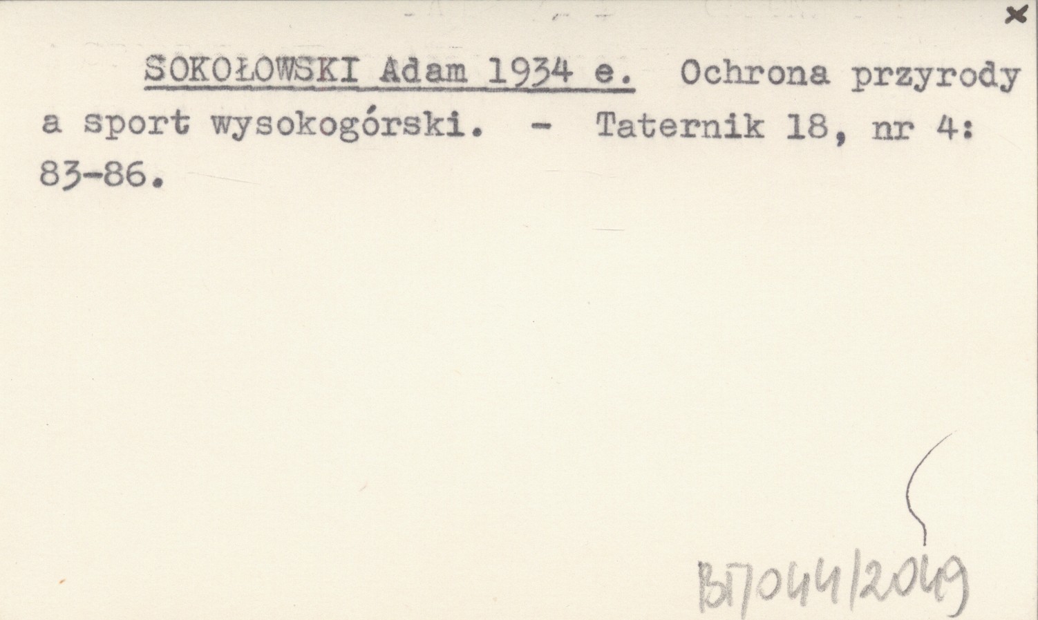 SOKOŁOWSKI Adam 1934 e Ochrona przyrody a sport wysokogórski.