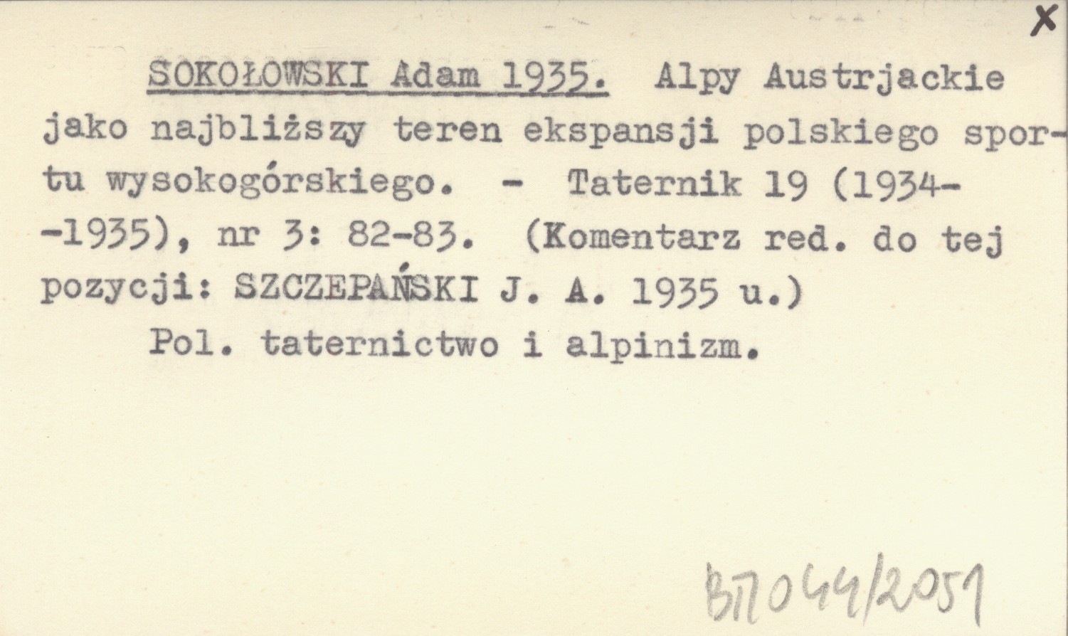 Taternik, 19 (1934-1935), nr 3: 82-83. Polskie taternictwo i alpinizm. Komentarz redakcyjny do tej pozycji: SZCZEPAŃSKI J. A. 1935 u.