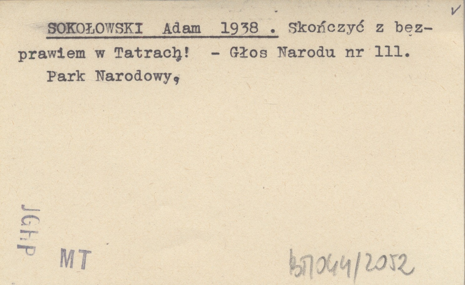 SOKOŁOWSKI Adam 1938 Skończyć z bezprawiem w Tatrach!