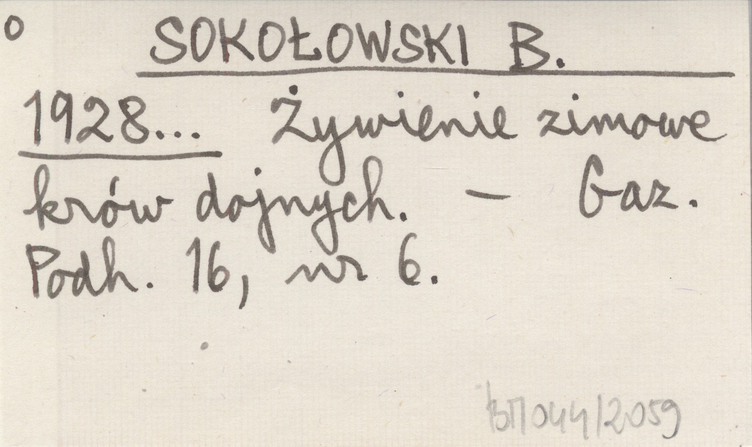 SOKOŁOWSKI B. 1928... Żywienie zimowe krów dojnych.