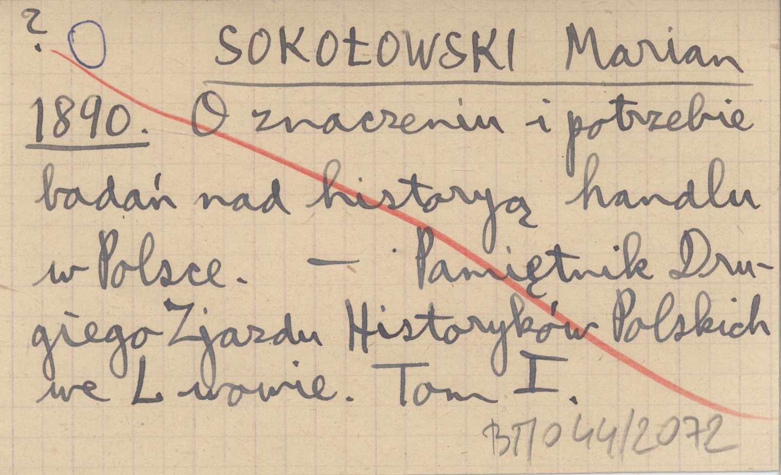 SOKOŁOWSKI Marian 1890 O znaczeniu i potrzebie badań nad historyą handlu w Polsce.