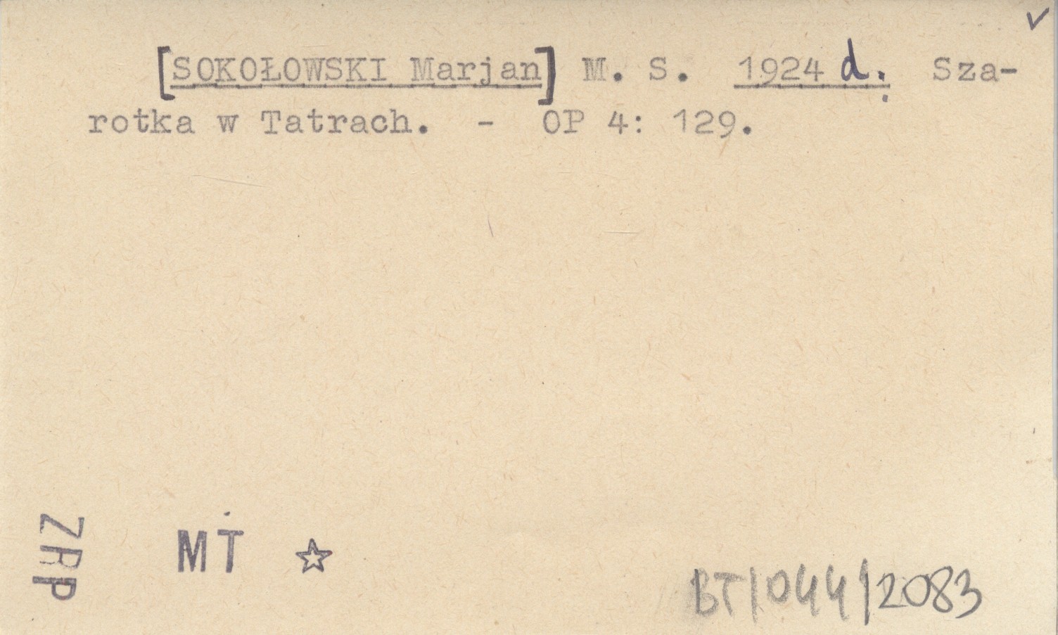 M. S. [SOKOŁOWSKI Marjan] 1924 d Szarotka w Tatrach.