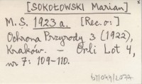 M. S. [SOKOŁOWSKI Marian] 1923 a [Rec. o:] Ochrona Przyrody 3 (1922), Kraków.