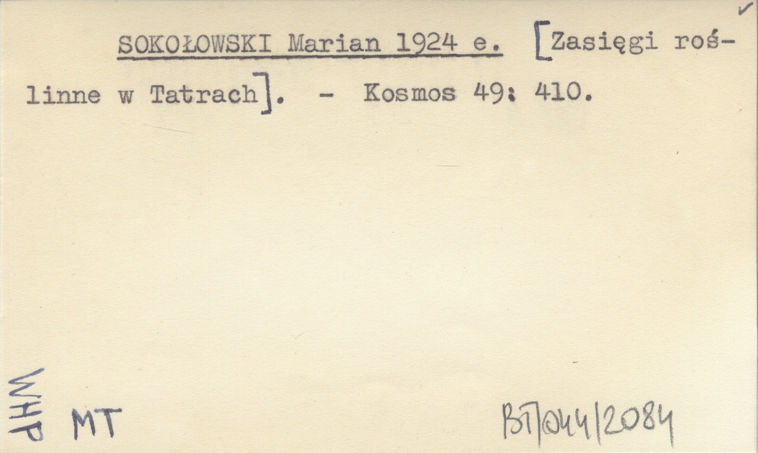SOKOŁOWSKI Marian 1924 e [Zasięgi roślinne w Tatrach.]