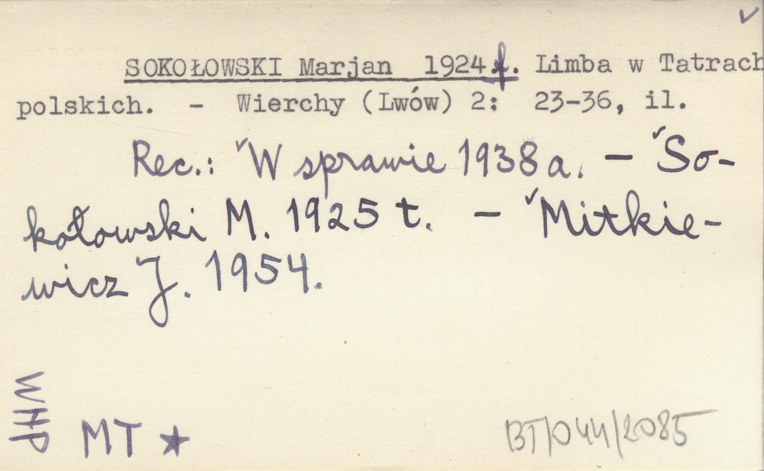 Wierchy (Lwów) , 2: 23-36, il. REC: W sprawie 1938 a ; SOKOŁOWSKI M. 1925 t ; MITKIEWICZ J. 1954 ;
