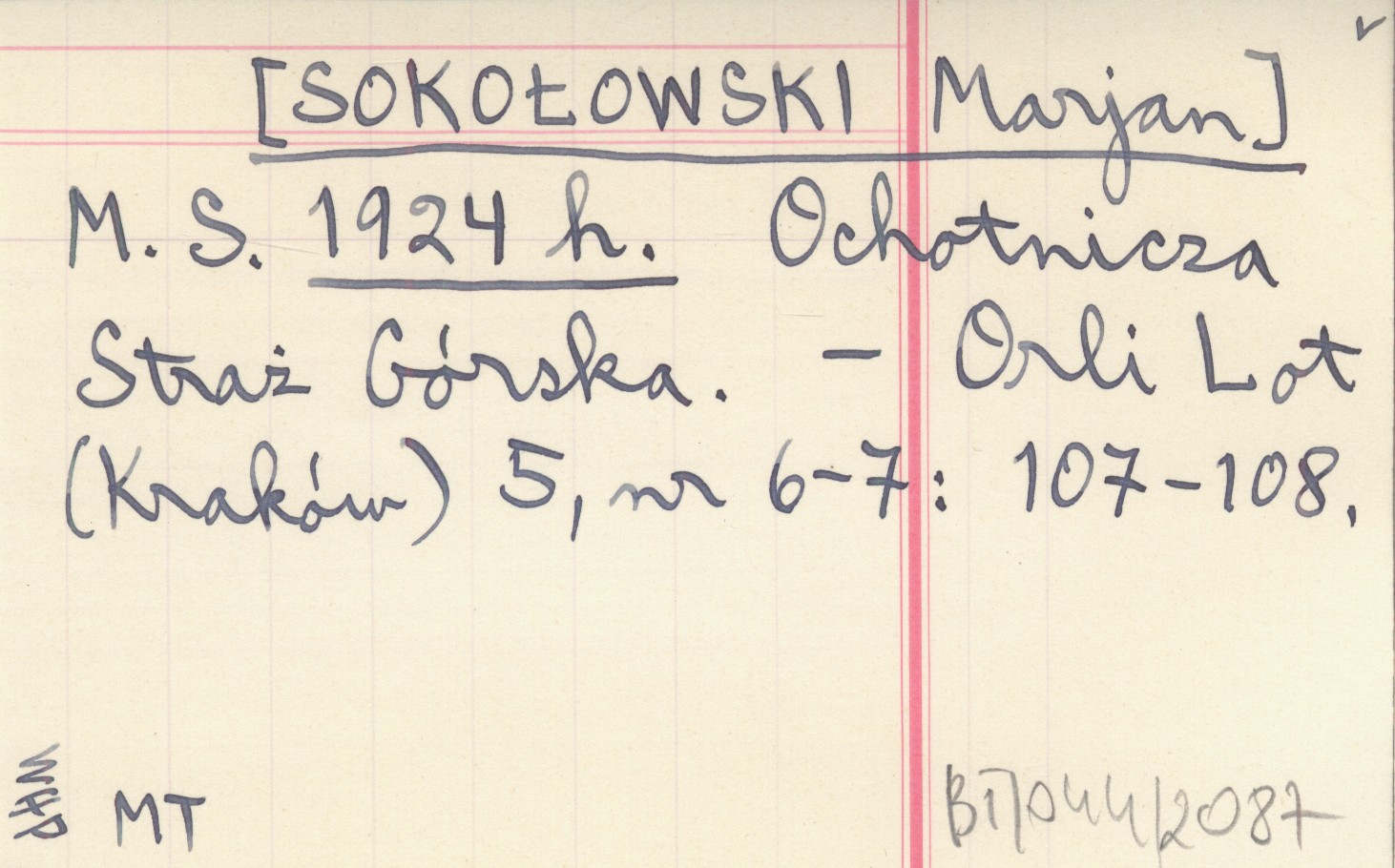 M. S. [SOKOŁOWSKI Marjan] 1924 h Ochotnicza Straż Górska.