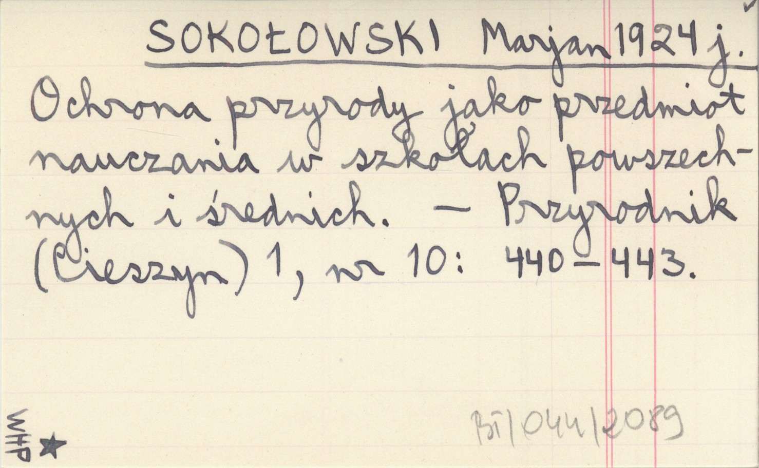 SOKOŁOWSKI Marjan 1924 j Ochrona przyrody jako przedmiot nauczania w szkołach powszechnych i średnich.