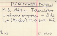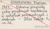 SOKOŁOWSKI Marjan 1924 j Ochrona przyrody jako przedmiot nauczania w szkołach powszechnych i średnich.