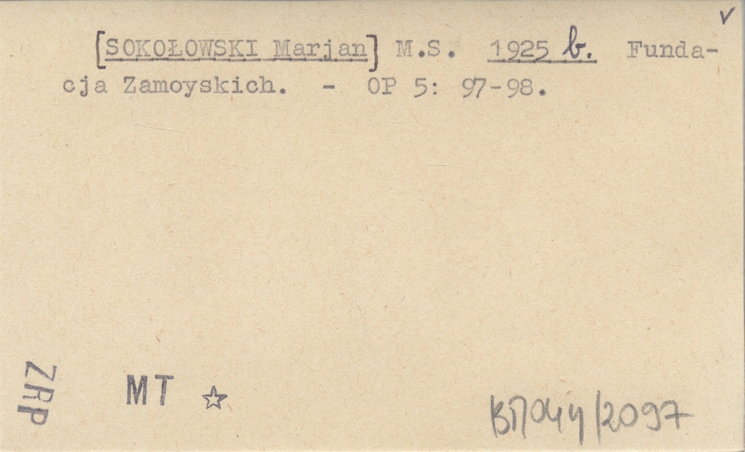 M. S. [SOKOŁOWSKI Marjan] 1925 b Fundacja Zamoyskich.