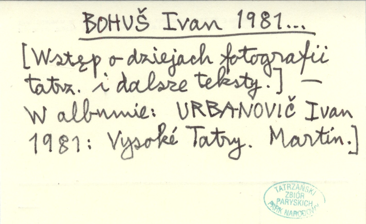 BOHUŠ Ivan 1981... [Wstęp o dziejach fotografii tatrz. i dalsze teksty.].
