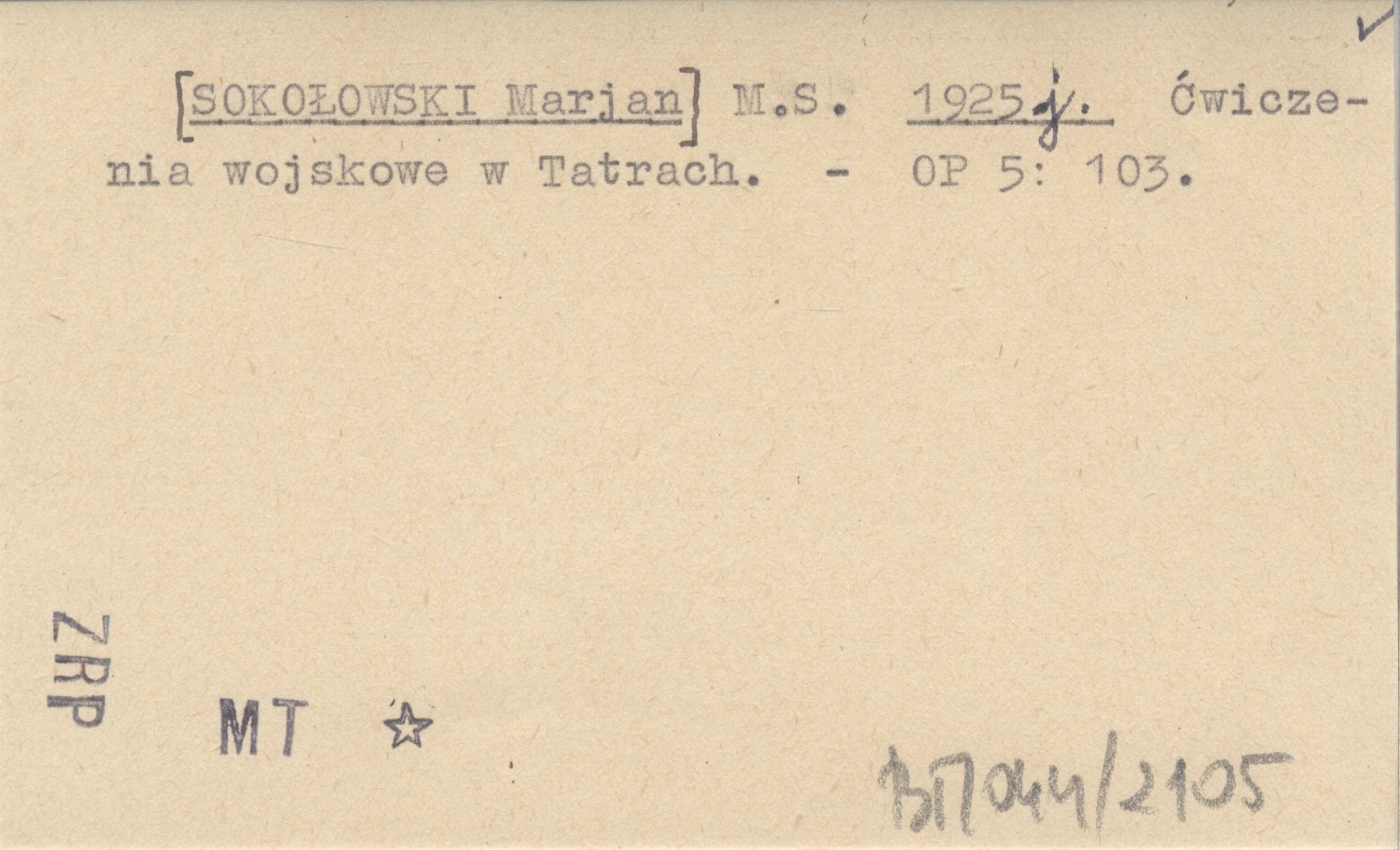 M. S. [SOKOŁOWSKI Marjan] 1925 j Ćwiczenia wojskowe w Tatrach.