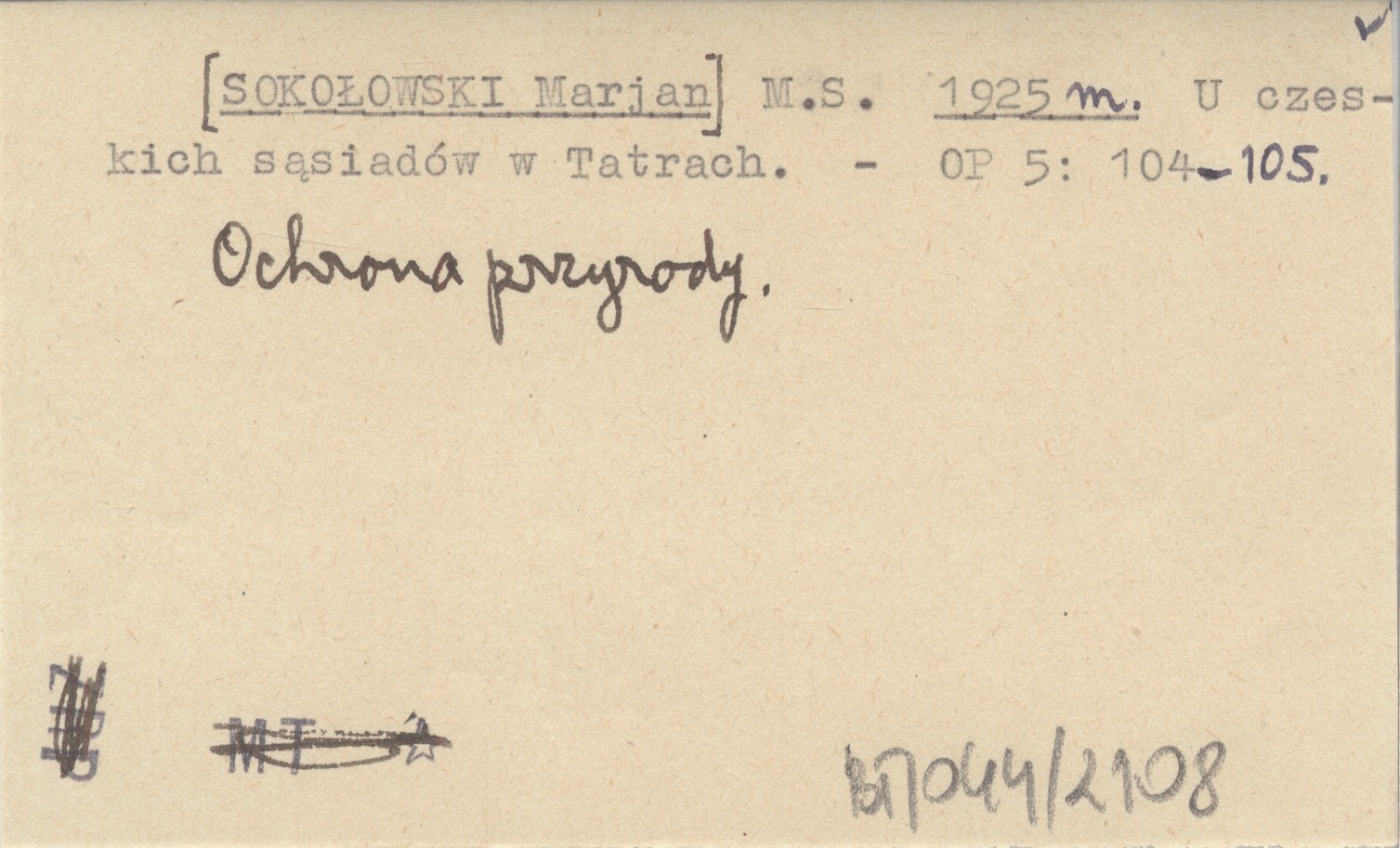 M. S. [SOKOŁOWSKI Marjan] 1925 m U czeskich sąsiadów w Tatrach.